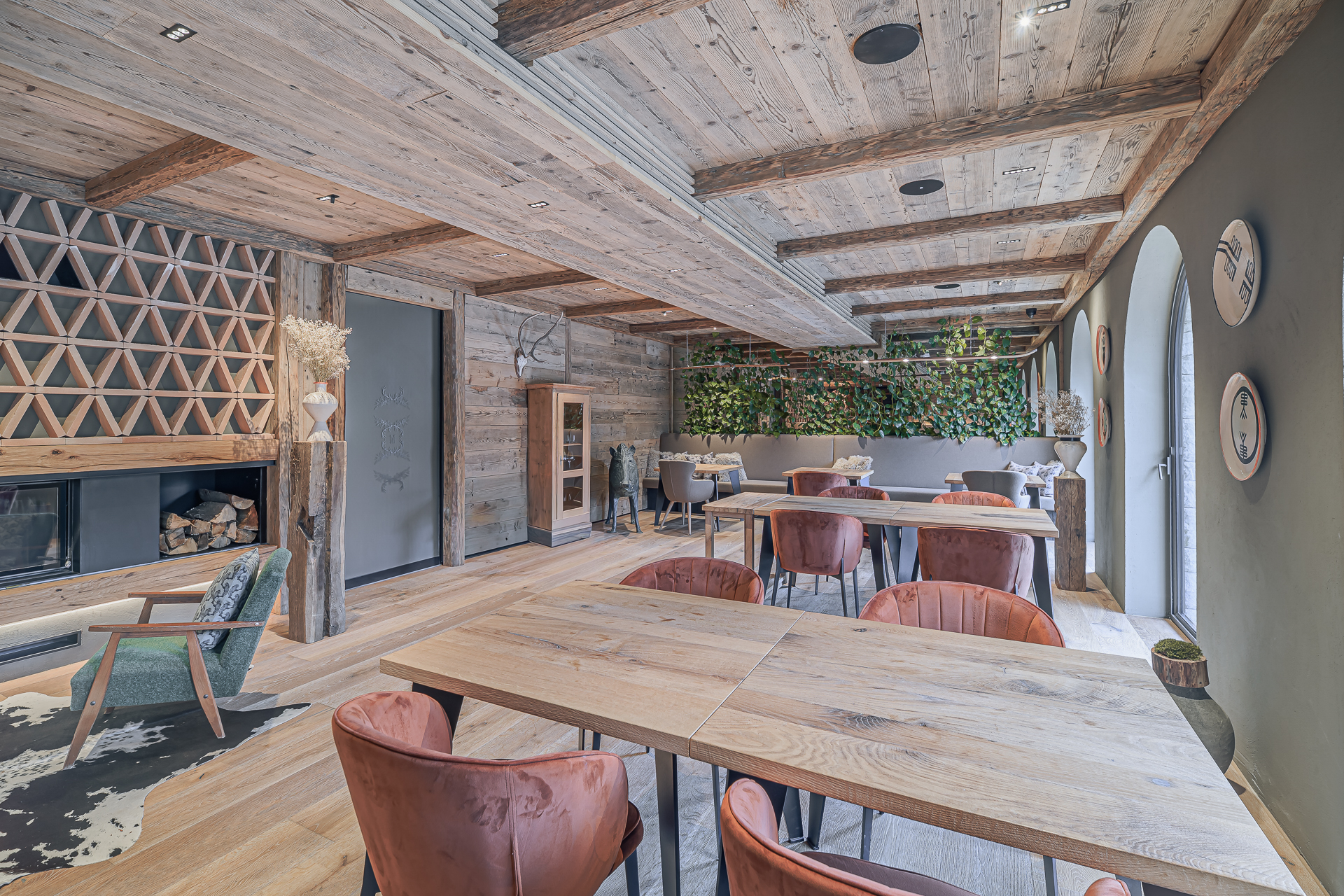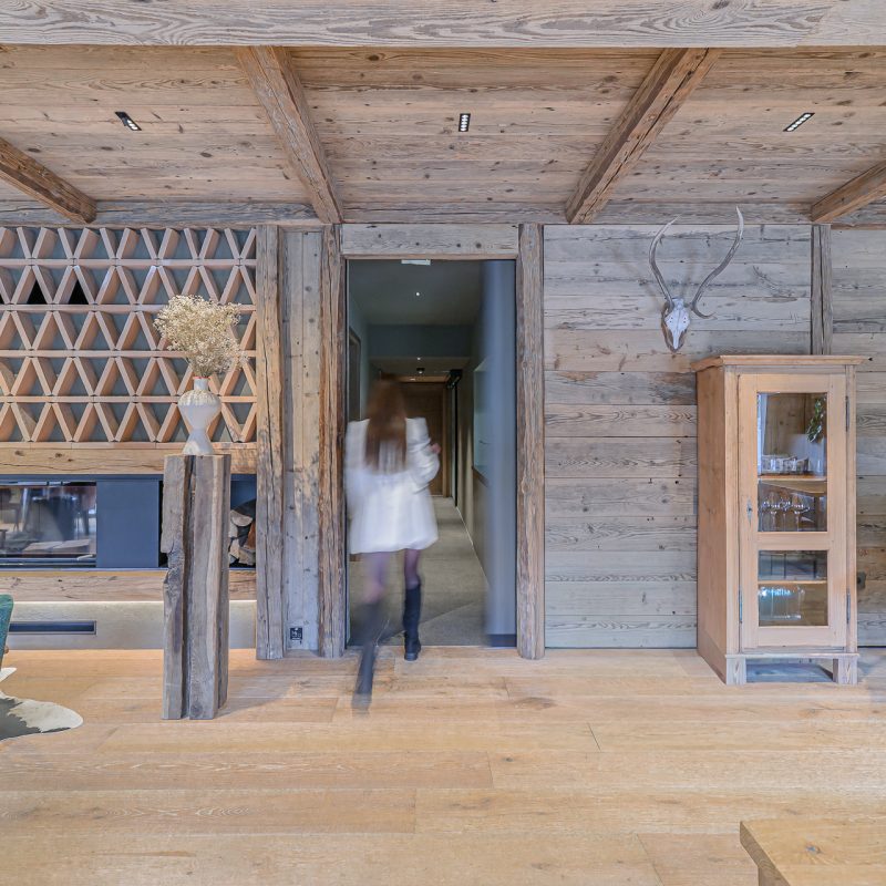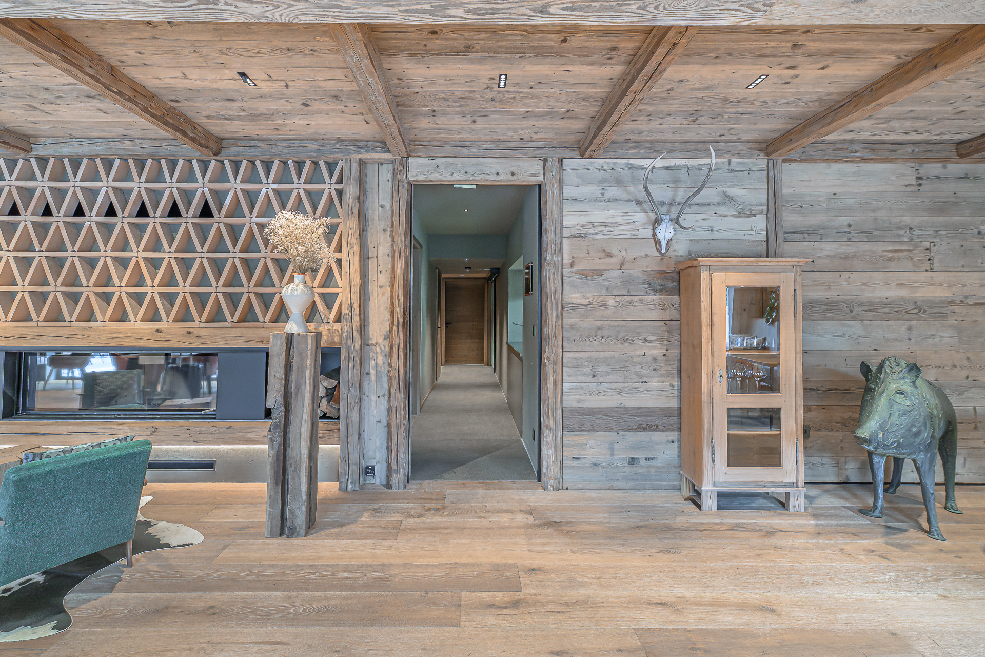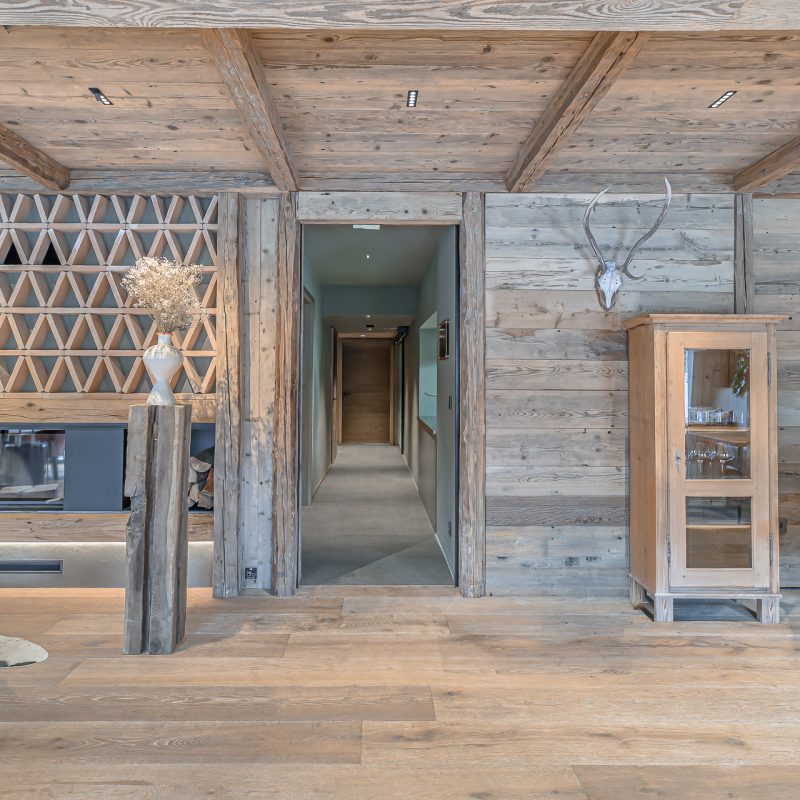 The interior of Villa Muhr is warm and inviting, with a strong focus on natural materials and a premium atmosphere.