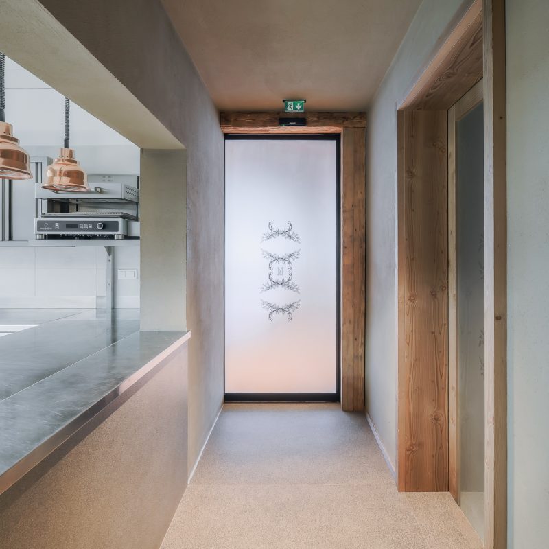 In narrow corridors of Villa Muhr, every centimetre counts. This is where doors 300 make a difference. Their sliding leaves do not require additional space to open, ensuring smooth and efficient movement at the kitchen and restaurant entrances.